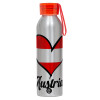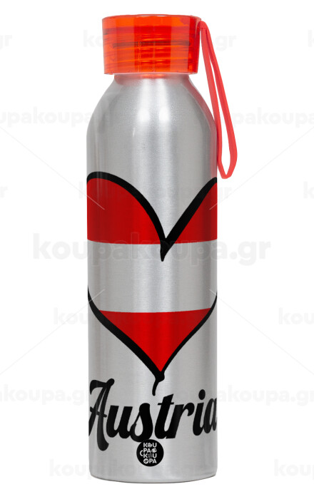 Austria flag, Aluminum Sports Bottle 650ml – Silver with Red Cap and Silicone Strap