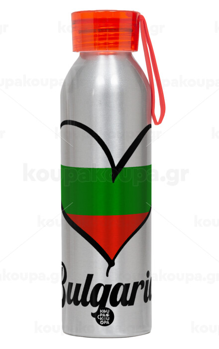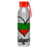 Bulgaria flag, Aluminum Sports Bottle 650ml – Silver with Red Cap and Silicone Strap