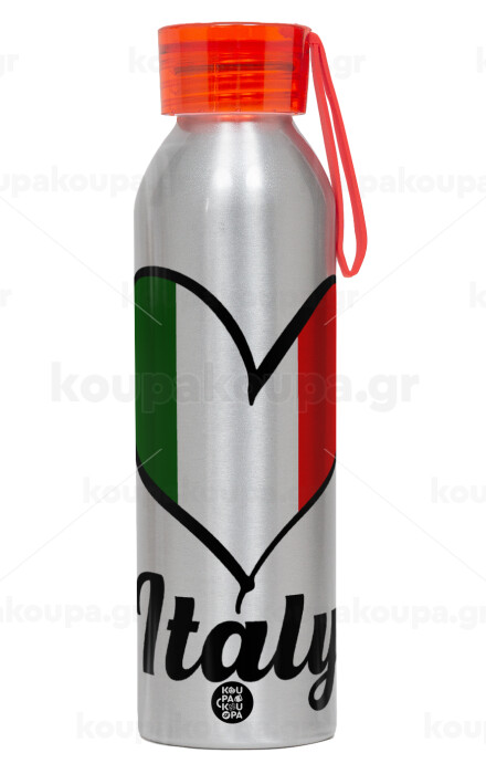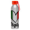 Italy flag, Aluminum Sports Bottle 650ml – Silver with Red Cap and Silicone Strap
