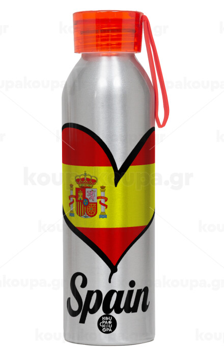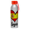 Spain flag, Aluminum Sports Bottle 650ml – Silver with Red Cap and Silicone Strap