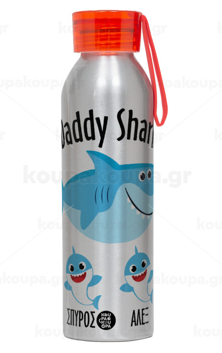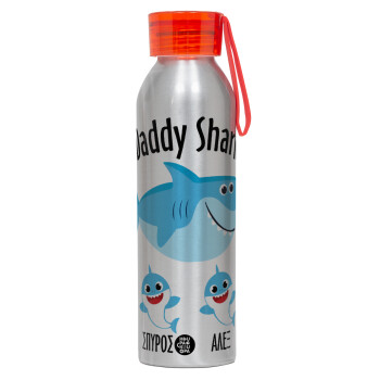 Daddy Shark (με ονόματα παιδικά), Aluminum Sports Bottle 650ml – Silver with Red Cap and Silicone Strap