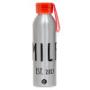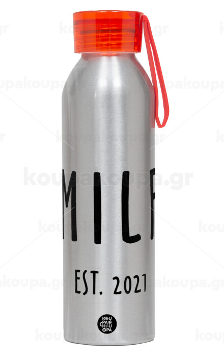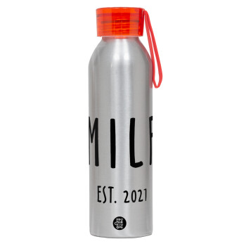 MILF, Aluminum Sports Bottle 650ml – Silver with Red Cap and Silicone Strap