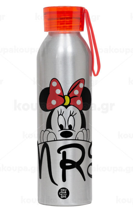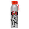Minnie Mrs, Aluminum Sports Bottle 650ml – Silver with Red Cap and Silicone Strap