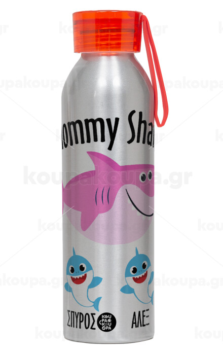 Mommy Shark (με ονόματα παιδικά), Aluminum Sports Bottle 650ml – Silver with Red Cap and Silicone Strap