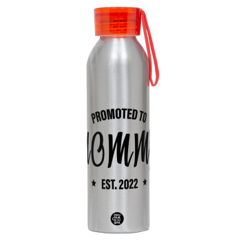 Promoted to Mommy, Aluminum Sports Bottle 650ml – Silver with Red Cap and Silicone Strap