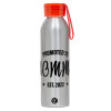 Aluminum Sports Bottle 650ml - Silver with Red Cap and Silicone Strap