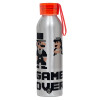 8bit Game Over Couple Wedding, Aluminum Sports Bottle 650ml – Silver with Red Cap and Silicone Strap