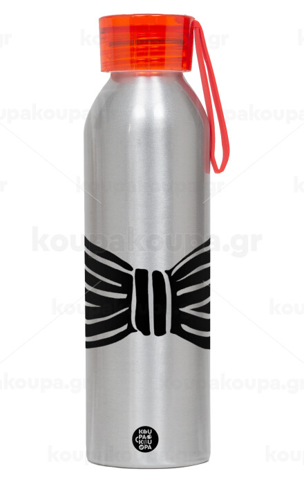 Bow tie, Aluminum Sports Bottle 650ml – Silver with Red Cap and Silicone Strap