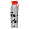 Team Bride, Aluminum Sports Bottle 650ml – Silver with Red Cap and Silicone Strap