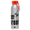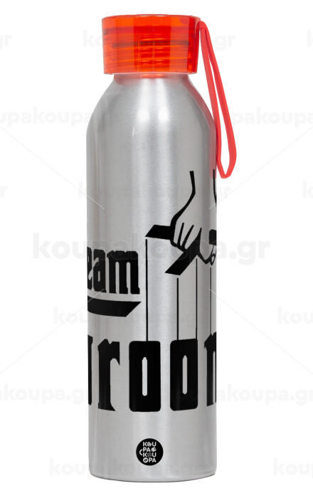Team Groom, Aluminum Sports Bottle 650ml – Silver with Red Cap and Silicone Strap
