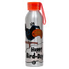 Happy Bird Day, Aluminum Sports Bottle 650ml – Silver with Red Cap and Silicone Strap