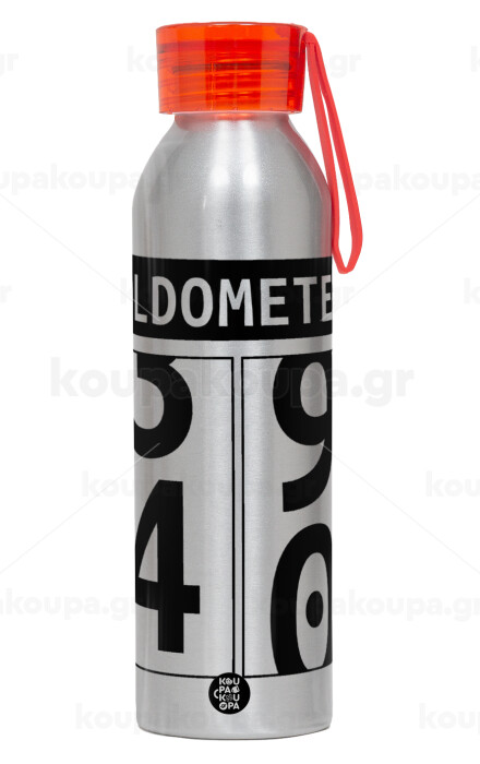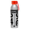 OLDOMETER, Aluminum Sports Bottle 650ml – Silver with Red Cap and Silicone Strap