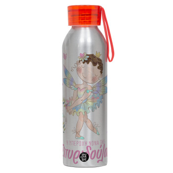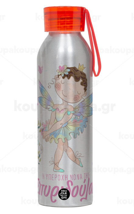 Η νονά μου, Νεράϊδα, Aluminum Sports Bottle 650ml – Silver with Red Cap and Silicone Strap