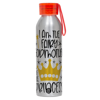 I am the fairy Godmother of the Princess, Aluminum Sports Bottle 650ml – Silver with Red Cap and Silicone Strap
