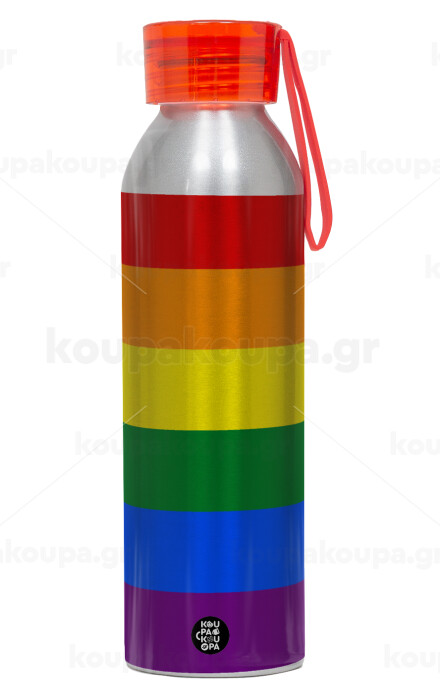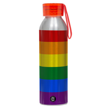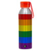 Rainbow flag (LGBT) , Aluminum Sports Bottle 650ml – Silver with Red Cap and Silicone Strap
