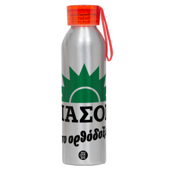 PASOK the orthodoxo, Aluminum Sports Bottle 650ml – Silver with Red Cap and Silicone Strap