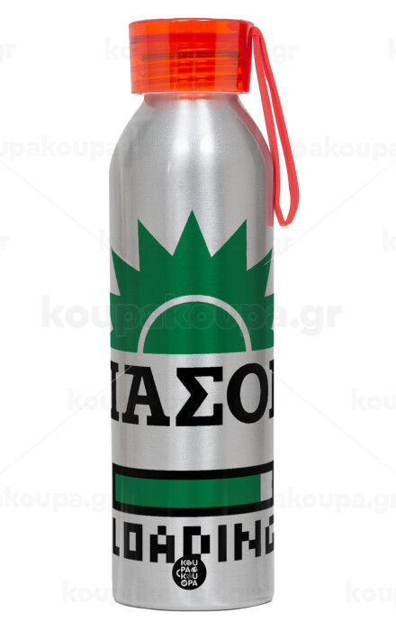 PASOK Loading, Aluminum Sports Bottle 650ml – Silver with Red Cap and Silicone Strap