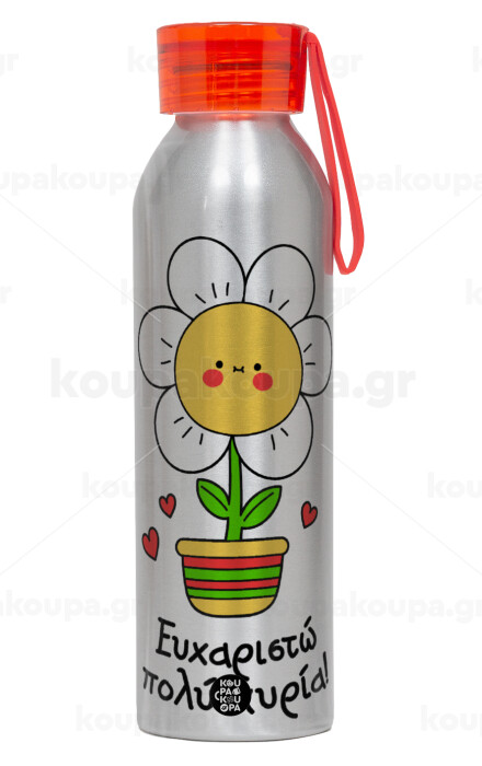 Ευχαριστώ πολύ κυρία!!!, Aluminum Sports Bottle 650ml – Silver with Red Cap and Silicone Strap
