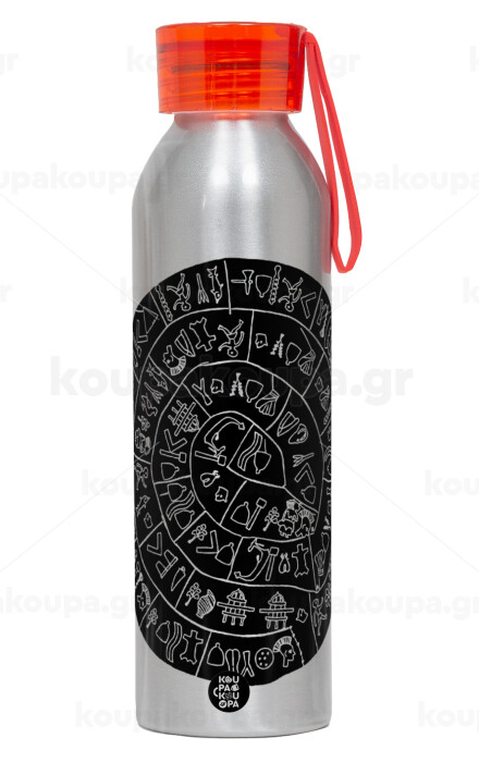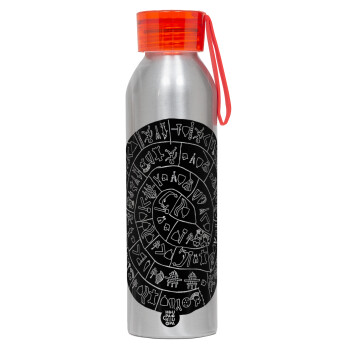 Δίσκος Φαιστού, Aluminum Sports Bottle 650ml – Silver with Red Cap and Silicone Strap