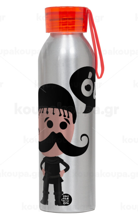 Κρητικός "Οι", Aluminum Sports Bottle 650ml – Silver with Red Cap and Silicone Strap