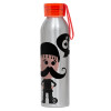 Aluminum Sports Bottle 650ml - Silver with Red Cap and Silicone Strap