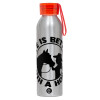 Aluminum Sports Bottle 650ml - Silver with Red Cap and Silicone Strap