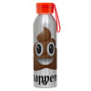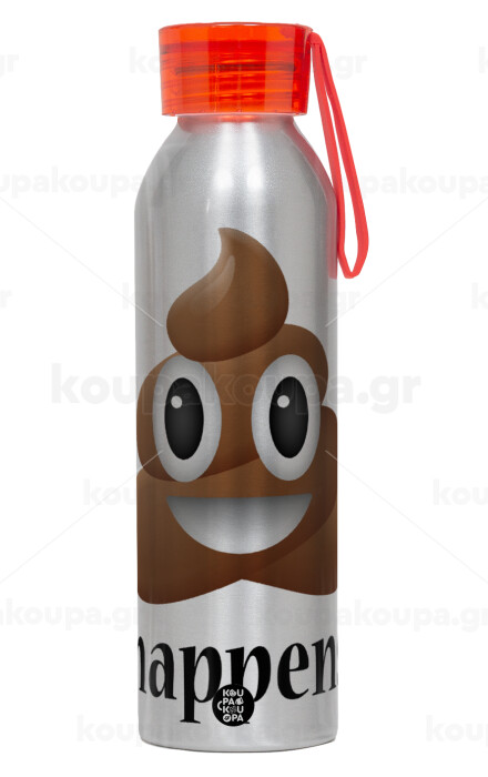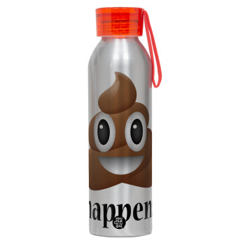 Shit Happens, Aluminum Sports Bottle 650ml – Silver with Red Cap and Silicone Strap