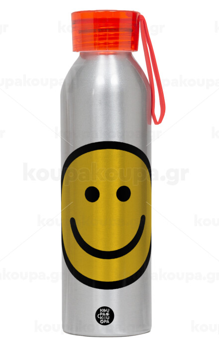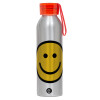 Smile classic, Aluminum Sports Bottle 650ml – Silver with Red Cap and Silicone Strap