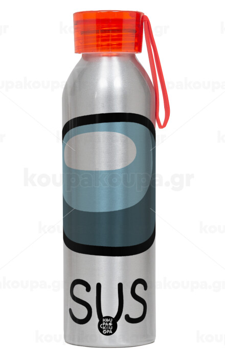 Among US SUS!!!, Aluminum Sports Bottle 650ml – Silver with Red Cap and Silicone Strap