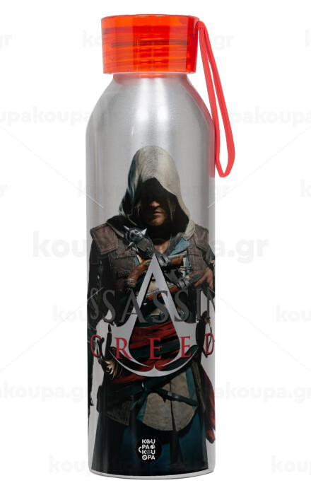 Assassin's Creed, Aluminum Sports Bottle 650ml – Silver with Red Cap and Silicone Strap