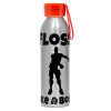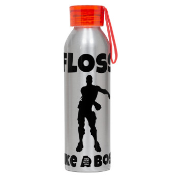 Fortnite Floss Like a Boss, Aluminum Sports Bottle 650ml – Silver with Red Cap and Silicone Strap