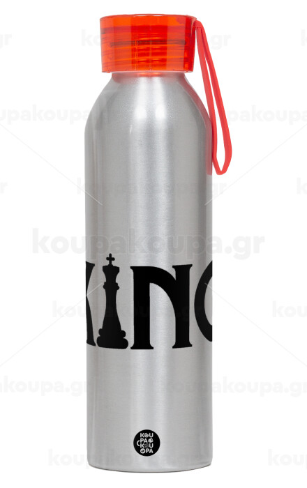King chess, Aluminum Sports Bottle 650ml – Silver with Red Cap and Silicone Strap