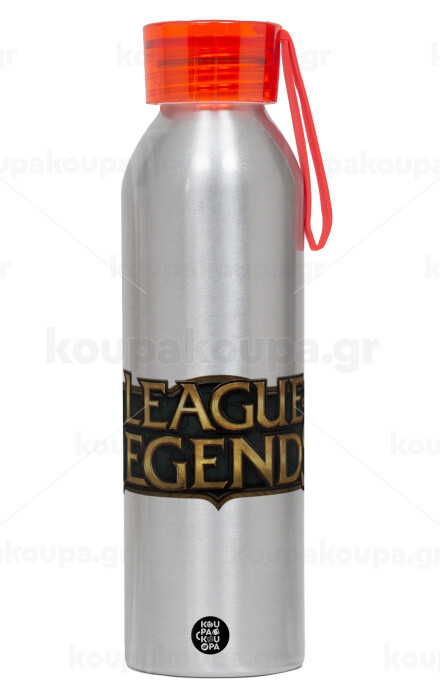 League of Legends LoL, Aluminum Sports Bottle 650ml – Silver with Red Cap and Silicone Strap