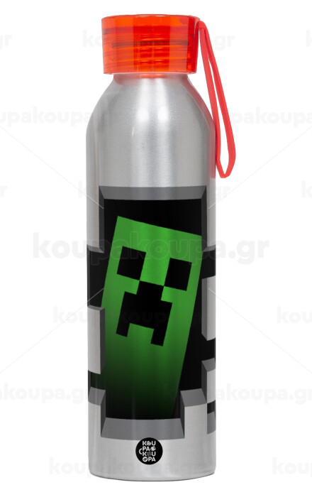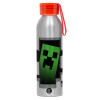 Minecraft creeper, Aluminum Sports Bottle 650ml – Silver with Red Cap and Silicone Strap