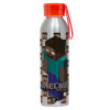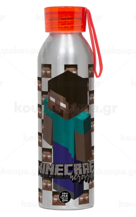 Minecraft herobrine, Aluminum Sports Bottle 650ml – Silver with Red Cap and Silicone Strap