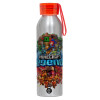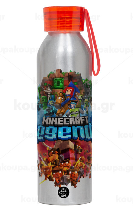Minecraft legends, Aluminum Sports Bottle 650ml – Silver with Red Cap and Silicone Strap