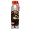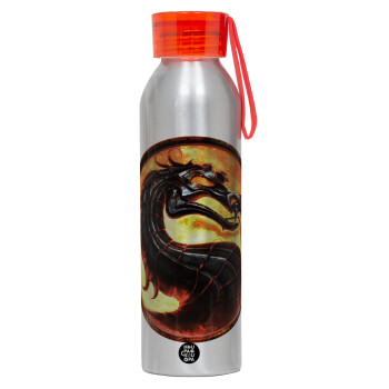 Mortal Kombat, Aluminum Sports Bottle 650ml – Silver with Red Cap and Silicone Strap