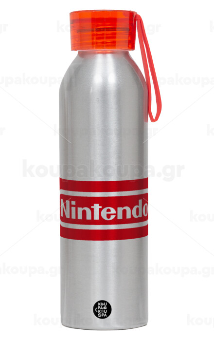 Nintendo, Aluminum Sports Bottle 650ml – Silver with Red Cap and Silicone Strap