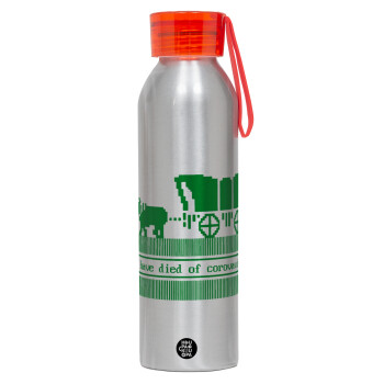 Oregon Trail, cov... edition, Aluminum Sports Bottle 650ml – Silver with Red Cap and Silicone Strap