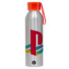 Playstation, Aluminum Sports Bottle 650ml – Silver with Red Cap and Silicone Strap