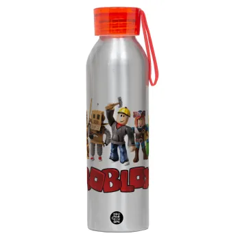 Roblox squad, Aluminum Sports Bottle 650ml – Silver with Red Cap and Silicone Strap