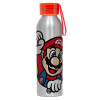 Super mario win, Aluminum Sports Bottle 650ml – Silver with Red Cap and Silicone Strap