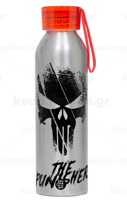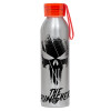 The punisher, Aluminum Sports Bottle 650ml – Silver with Red Cap and Silicone Strap