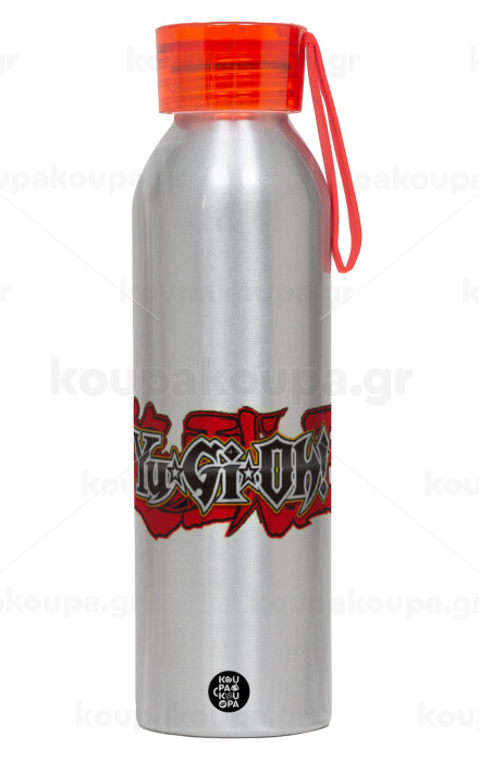 Yu-Gi-Oh, Aluminum Sports Bottle 650ml – Silver with Red Cap and Silicone Strap