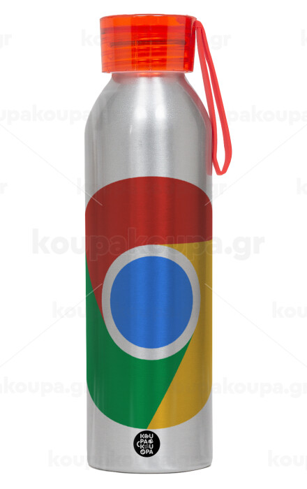 Chrome, Aluminum Sports Bottle 650ml – Silver with Red Cap and Silicone Strap