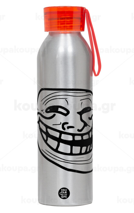 Troll face, Aluminum Sports Bottle 650ml – Silver with Red Cap and Silicone Strap