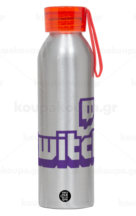 Twitch, Aluminum Sports Bottle 650ml – Silver with Red Cap and Silicone Strap
