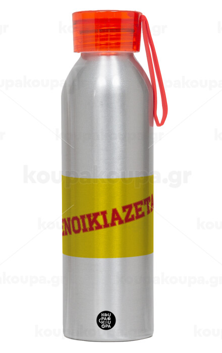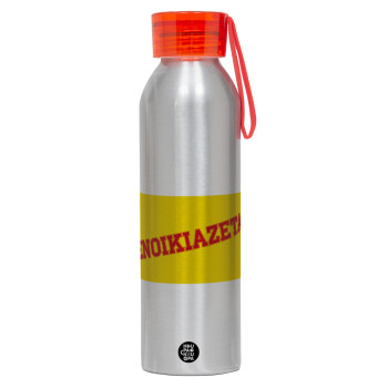 ΕΝΟΙΚΙΑΖΕΤΑΙ, Aluminum Sports Bottle 650ml – Silver with Red Cap and Silicone Strap