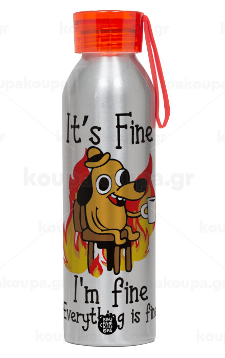 It's Fine I'm Fine Everything Is Fine, Aluminum Sports Bottle 650ml – Silver with Red Cap and Silicone Strap