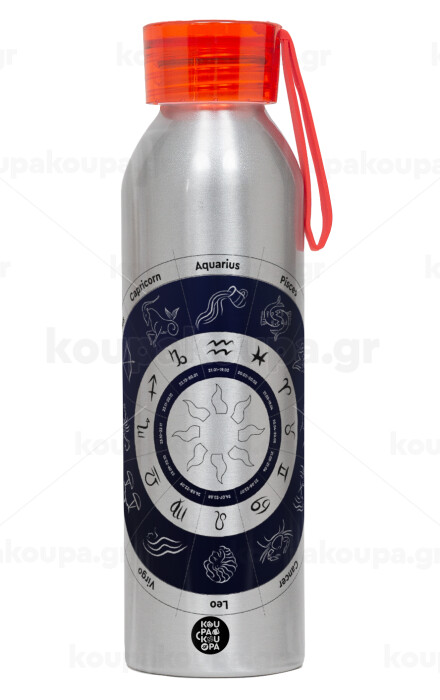 Ζωδιακός κύκλος, Aluminum Sports Bottle 650ml – Silver with Red Cap and Silicone Strap